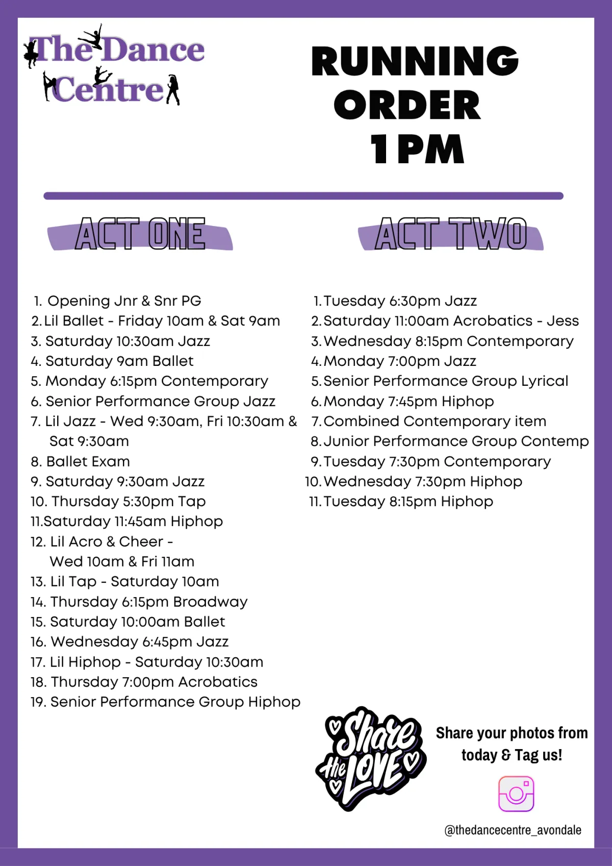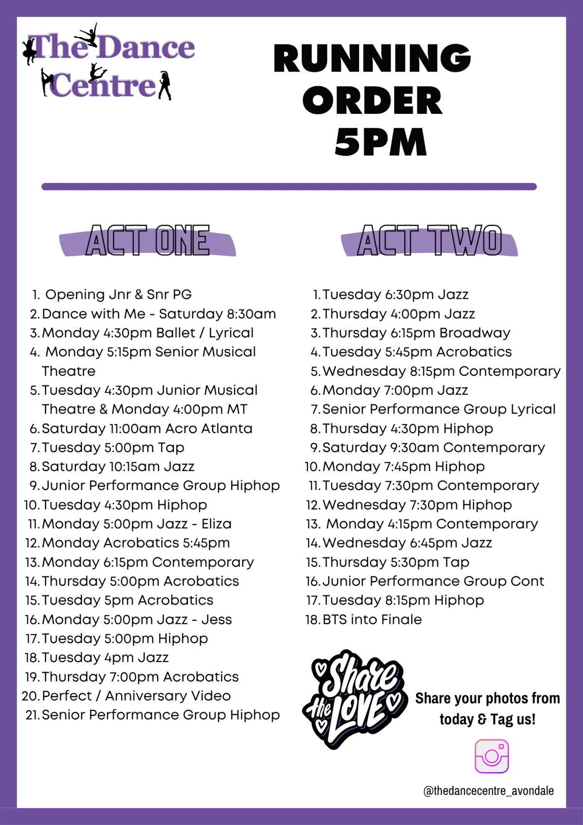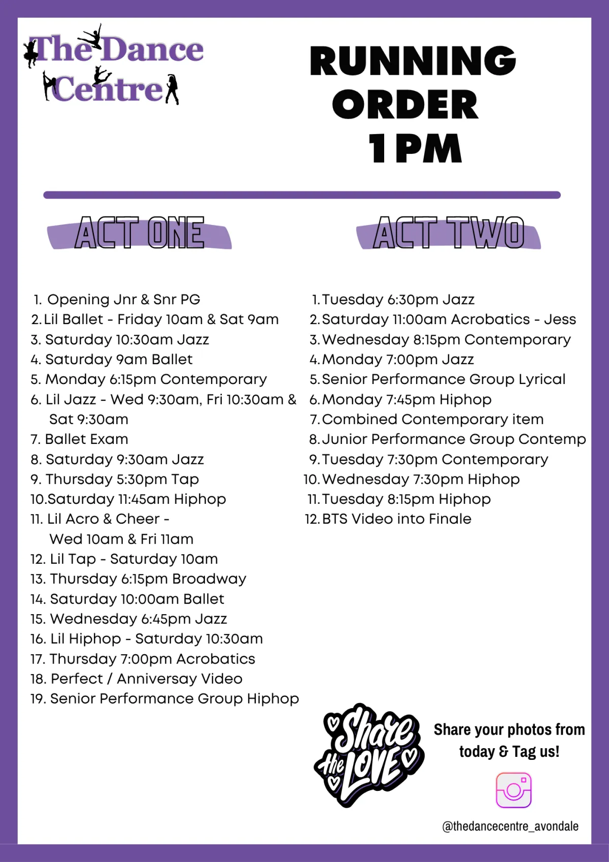 If this is your child’s first concert, please feel reassured our goal is to keep the whole experience simple and enjoyable for families. Concert routines are taught during regular class time, with each class learning 1 routine. For example, a student in Jazz will perform 1 Jazz routine. If they take both Jazz and Ballet, they’ll perform 2 routines. The more classes they take, the more opportunities they have to shine on stage.