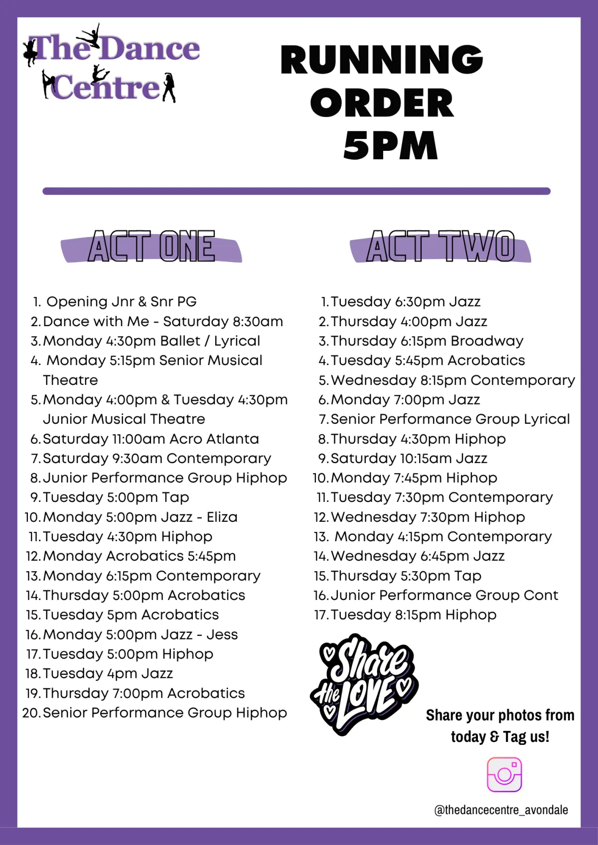 Each week, students refine their routines in class while also developing performance skills, teamwork and confidence. Regular attendance helps ease nerves and ensures students feel well prepared. If your child misses a class, please know all routines will also be uploaded to the studio Band App so they can catch up and review before returning the following week.